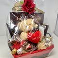 The ILY Basket is the perfect gift for your Valentine. It includes our fine Belgian truffles, a stuffed teddy bear, our signature wrapped chocolates, coconut wafers, chocolate covered almonds, and more!